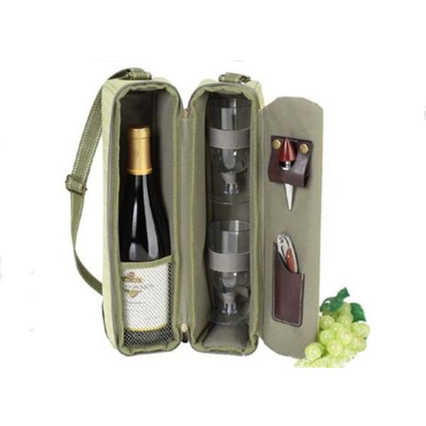 Customized single wine picnic bag wine bottle and two glass bag with strap Images |